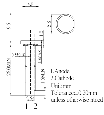 LED; THT; 5mm; czerwony; 68~100mcd; 620~630nm; 30mA; 180°; 1,8~2,6V; -30~+85°C; matowa; cylindryczna