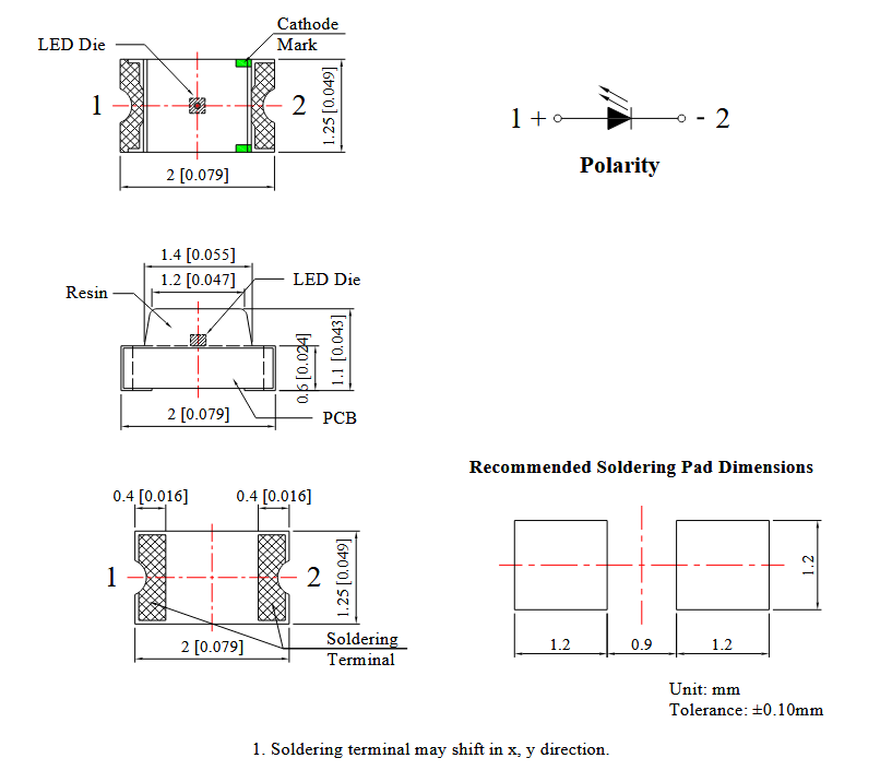 | Broadcom | LED | SMD | 0805 | Czerwony | 45mcd ~ 165mcd | 170° | 20mA | Dyfuzyjna | 60mW | 2,2V ~ 2,6V | 631nm ~ 643nm | -40°C ~ 85°C | |||||||||