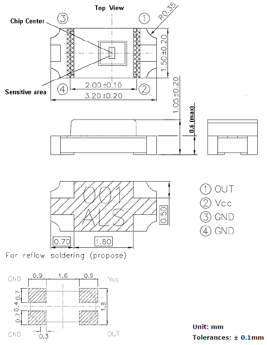 950mV 130° SMD 10mA -40°C ~ 85°C 940nm 400nm~1100nm