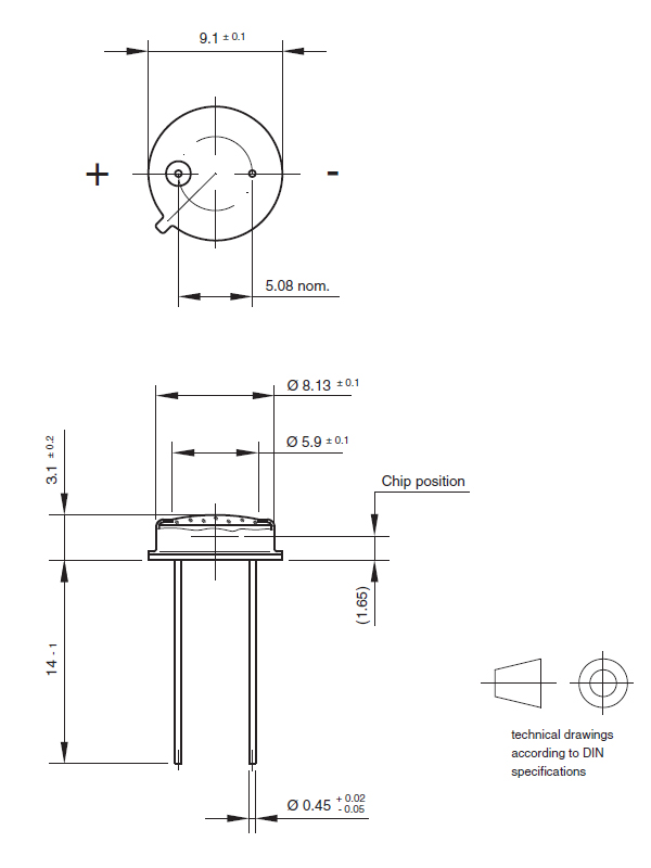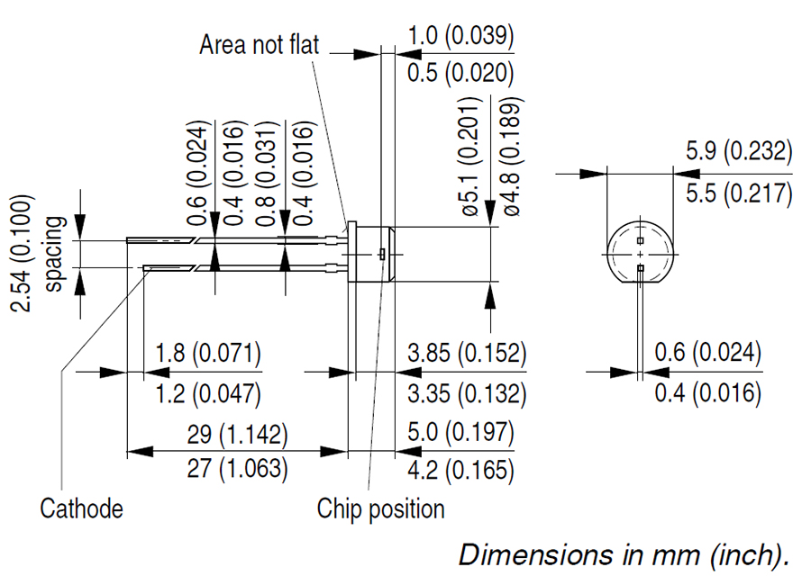 5,1mm 1,3V 20° THT 80mA -40°C ~ 100°C 850nm 400nm~1100nm