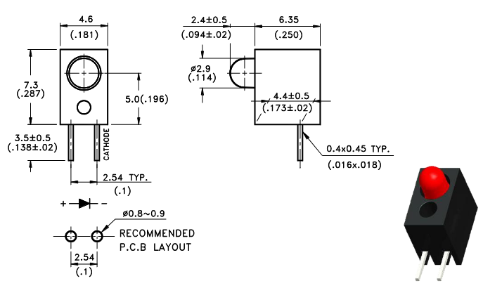 Lite-On | 7,3x4,6x6,35mm | 7,3mm | 3mm | Czerwony | Czarny | 2,5mcd ~ 50mcd | 615nm ~ 632nm | 60° | 2V ~ 2,6V | |||||||||||||