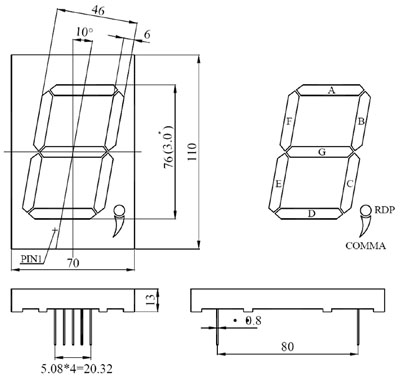 Wyświetlacz LED 3.00"; pojedynczy; czerwony (645nm); jasność: 28 - 33 mcd; czarne tło; wspólna anoda; IF=20mA; VF=11.0V;