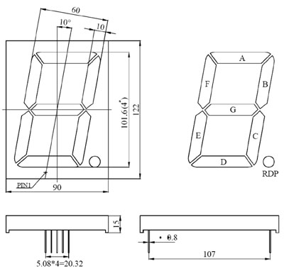 Wyświetlacz LED 1.50"; pojedynczy; czerwony (645nm); jasność: 130 mcd; szare tło; wspólna anoda; IF=30mA; VF=2.5V