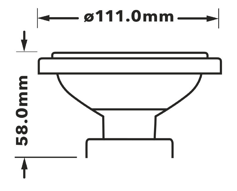 Żarówka LED typu AR111 10.0W (odp. 88W), b.ciepła (3000K), 700lm, 12°, 12V AC/DC Kształt: AR111/QR111, trzonek: G53, Φ111×58mm, ściemnialna, CRI>90