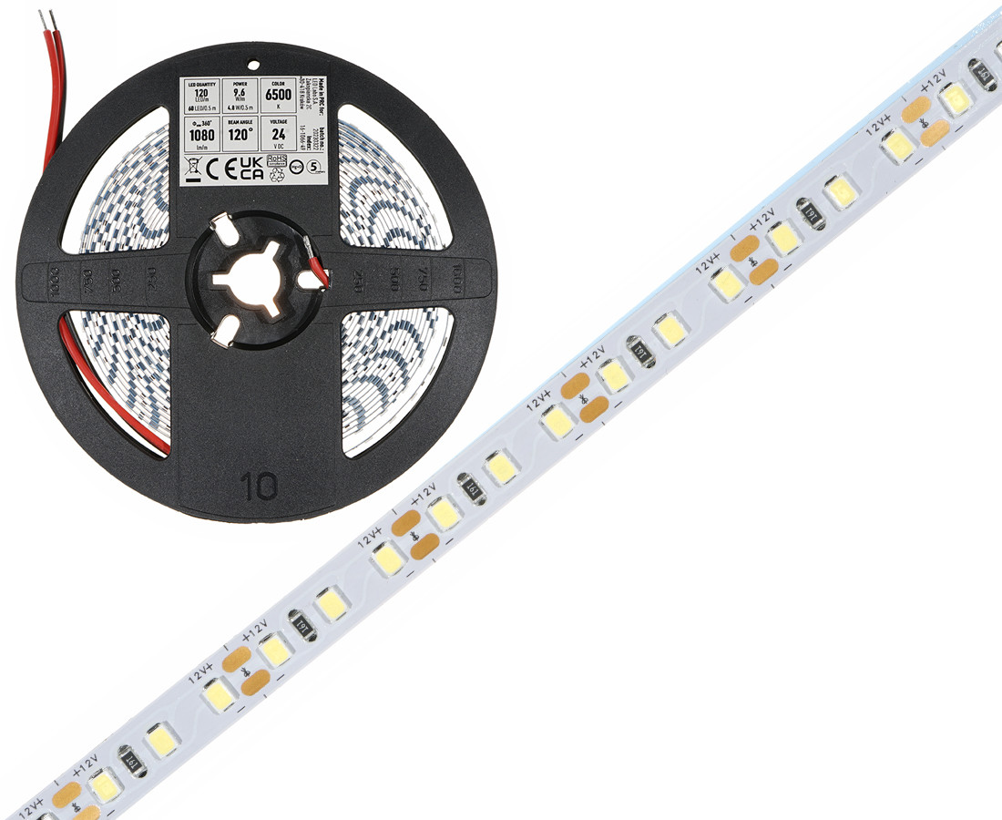 Taśma LED STANDARD 2835/120, zimna, 9,6W/m, 24V, 1080lm, 6500K, RA>80, IP20, 2Y