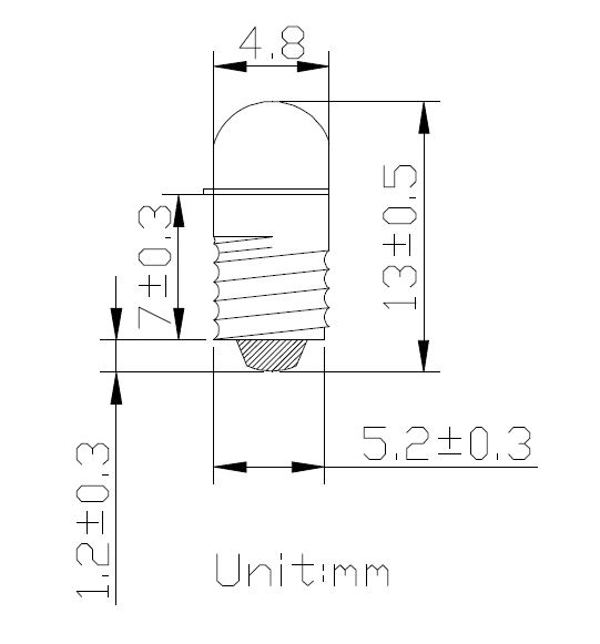 Żarówka LED z gwintem E5; Φ4,8mm; biała zimna 18000K; jasność: 3000mcd kąt świecenia: 30°; IF=20mA; napięcie: 3,0V; moc: 0.1W; wodnoprzeź.