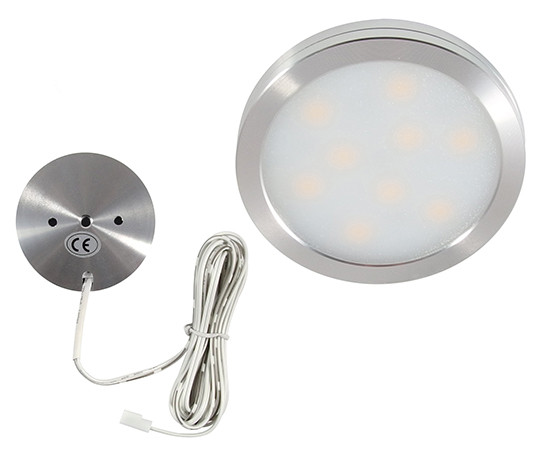 Zestaw 3 lamp SPACE, 7.2W, 330lm, biała ciepła, 12VDC, wymiary: Ω70*15mm Kolor: aluminium, IP20 w zestawie zasilacz wtyczkowy i wyłącznik + rozdzielacz