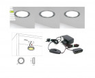 Zestaw 3 lamp Idet, 4.5W, 300lm, biała ciepła, 12VDC, wymiary: Ω58*8mm Kolor: aluminium, IP20 w zestawie zasilacz wtyczkowy i wyłącznik + rozdzielacz