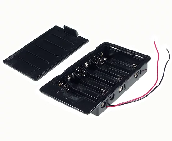 Pojemnik baterii: AA; R6; czarny; z przewodami: 150mm; ilość baterii: 6; długość: 114mm; szerokość: 66mm; wysokość: 18mm