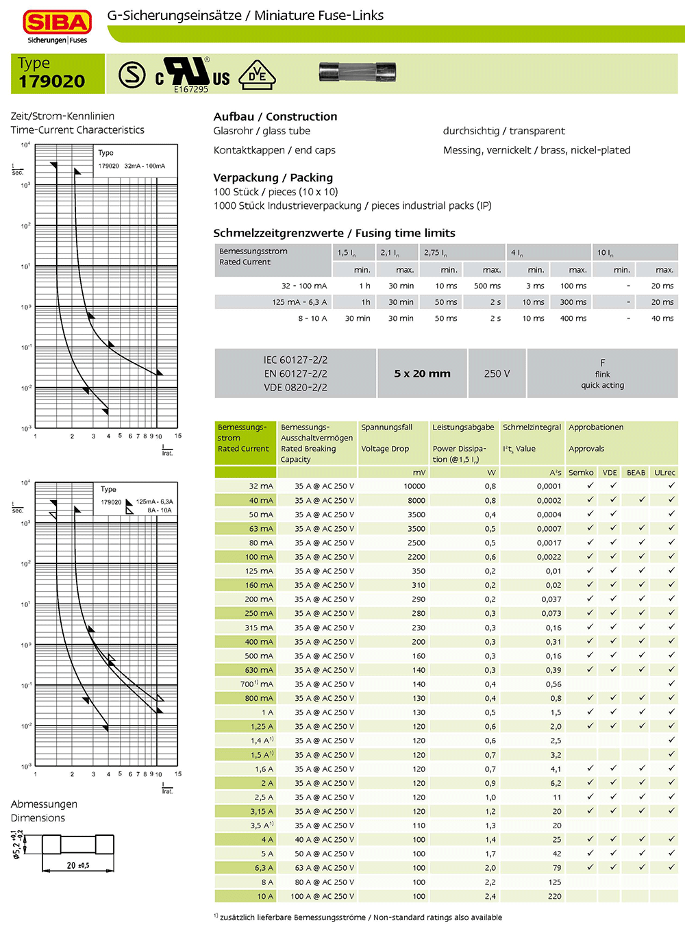 Bezpiecznik: szybki; szklany; WTA; prąd: 160mA; napięcie: 250V; wymiary: 5x20mm; odpowiedniki: 0217.160MXP; 179020.0,16; 0034.1508