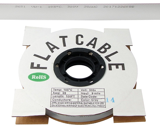 szara; AWG28 (7x0.1mm), 14żył, kolor szary z pierwszą żyłą czerwoną; raster: 1,27mm, temp. pracy: -40°C ~+105°C, przeznaczone do złącz typu IDC - 2.54mm; długość rolki: 30,5m