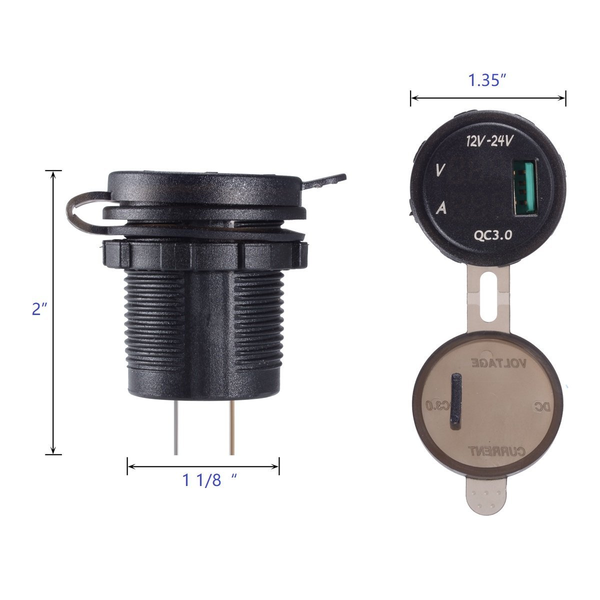 Pojedyncza ładowarka samoch. USB QC 3.0 z cyfrowym voltomierzem, okrągła, niebie Napięcie: 12-24V, 0.08-3A, kształt:okrągły, kolor: niebieski