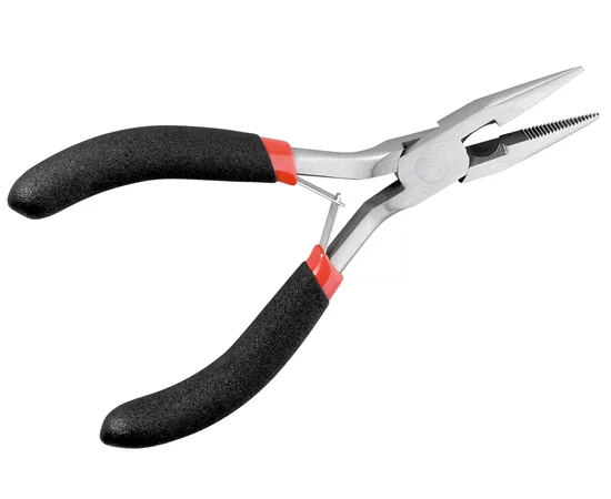 Szczypce płaskie półokrągłe 125 mm; Ze żłobkowanymi szczękami (2,5 cm); Polerowane; Z podwójnym mechanizmem sprężynowym; Antypoślizgowe; Izolowana rękojeść;