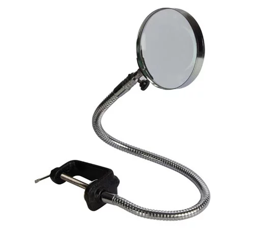 Lupa z wyginanym ramieniem; Dioptria: 3x; Długość ramienia: 51cm; Średnica lupy : 90mm; Z uchwytem montażowym;
