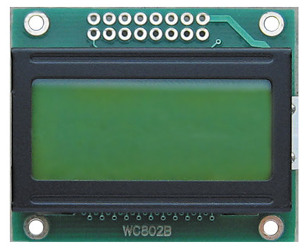 Wyświetlacz LCD znakowy 8x2 znaki, rozmiar 46.5x38.5x13.5mm, okno 38.5x16.0mm bez podświetlenia, szare znaki