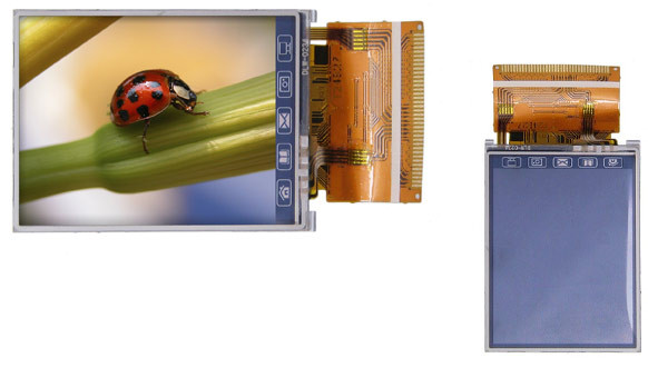 Wyświetlacz LCD TFT graficzny, 16M kol, 320x240 pkt, rozmiar 2.4"=60.96mm okno 36.72x48.96mm, wym.42.72×60.26x3.80mm, 3.3V, -20 do +70°C, kontr. 300:1