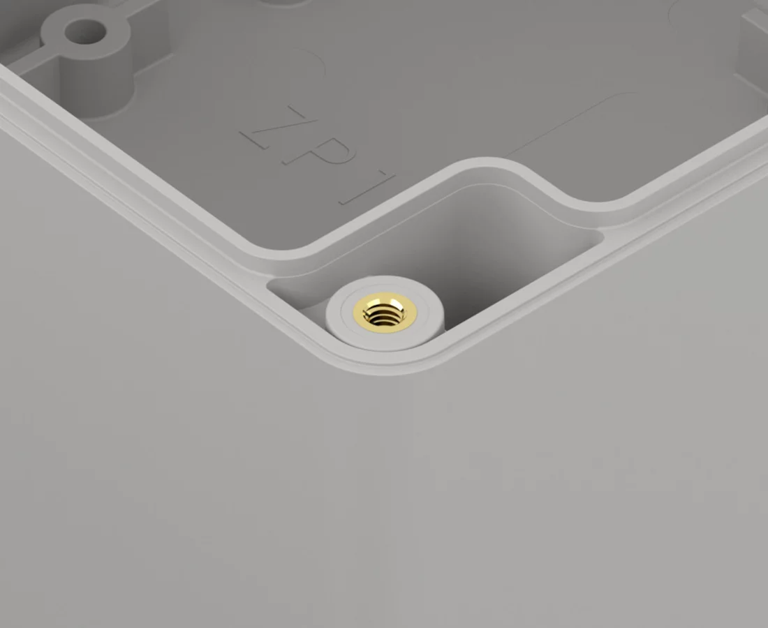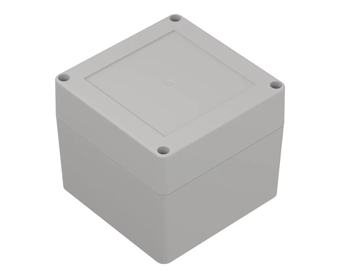 Obudowa hermetyczna z poliwęglanu ZP105.105.90 jasnoszara Wymiary: 105x105x89.8mm, z tulejkami mosiężnymi