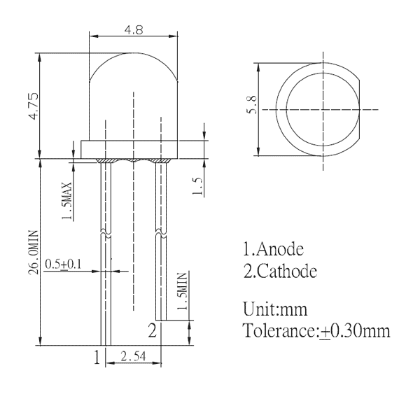 Nadajnik podczerwieni okrągły 4.8mm; wodnoprzeźroczysty; długość fali: 880nm 200mW; 100mA; 1,6V; temperatura pracy -40°C +100°C;