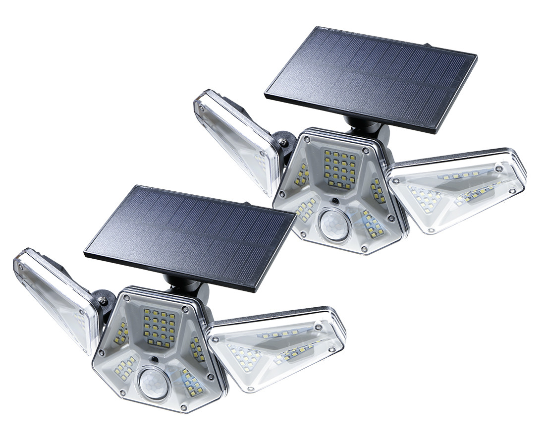 Lampa LED solarna czarna, biała zimna, 400lm, 120°, IP65, 2200mAh Czarna obudowa, 270×127×123mm, 113x SMD 6000K, w opakowaniu 2 szt i pilot.
