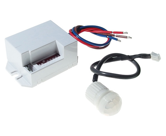 Włącznik PIR, Uzas=12-24V DC, Max obciążenie 30W, Wymiary: czujnik d20x12mm, otwór montażowy: d18mm, sterownik 88x15x10mm, zasięg 2m, 30sec wł->wył
