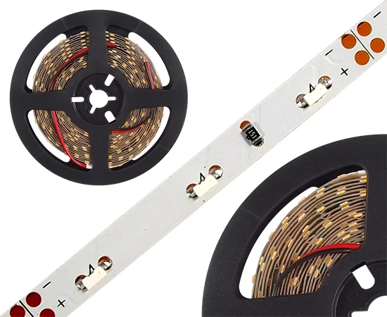 Taśma LED zielona (520nm), 600LED 335SMD, 48W, 12V, 120°, 4200lm rolka: 5mm x 5m, szerokość PCB:5mm, temp. pracy: -20°C ~ +60°C, białe tło, IP20