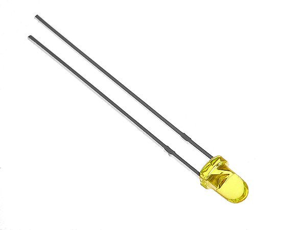 LED THT; żółty; jasność: 10-50mcd; kąt świecenia: 50°; prąd diody: 30mA Długość fali: 590nm; przeźroczysta; moc: 105mW; napięcie pracy: 2,1-2,5V
