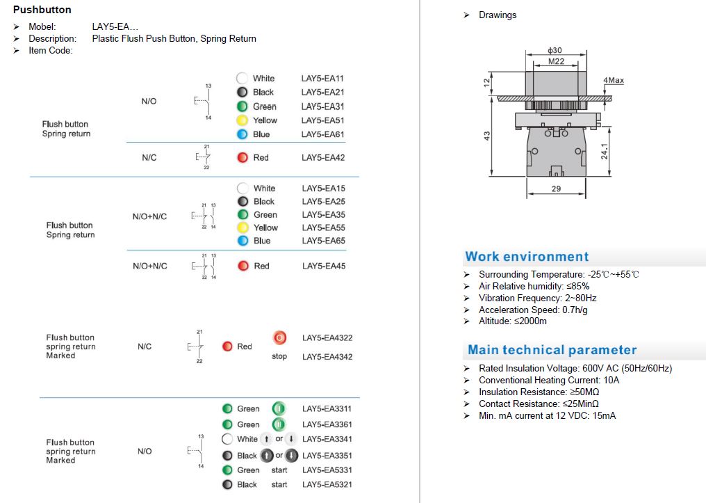 Przycisk; czarny; kryty; okrągły; monostabilny; N/O; z oznaczeniem strzałki; jeden przycisk; prąd: 10A; wymiary: 55x29mm