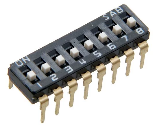 przełącznik dip-switch typu IC wykonanie wzmocnione, 8 sekcji, złocenie 3u", obudowa DIP kolor czarny, wysokość 3.20mm + suwak 0.6mm