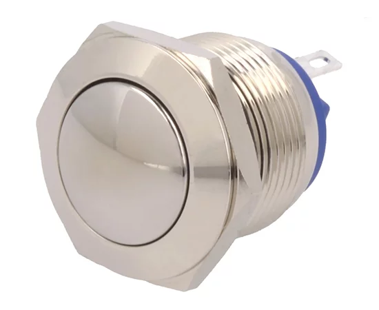 19mm; monostabilny; OFF-(ON); SPST-NO; mosiądz niklowany; silber; do lutowania; wypukły przycisk; 2A; 36VDC; IP65; żywotność: 1000000 cykli