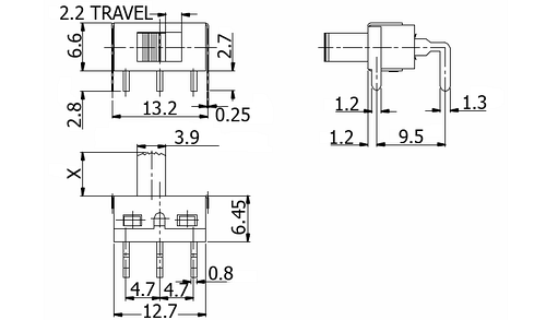 do druku; kątowy; 0.5A 50V DC; ON-ON; 1C-2P
