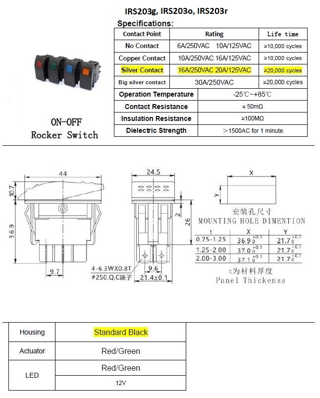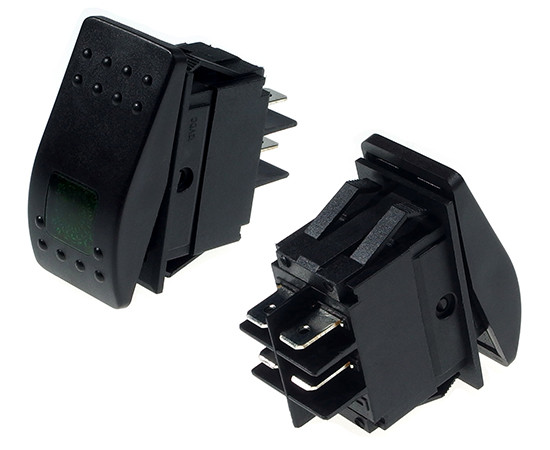 20A 125VAC,16A 250VAC; bistabilny; ON-OFF; DPST; 4P; zielone podświetlenie; żywotność: 20000 cykli; temperatura pracy: -25°C+85°C