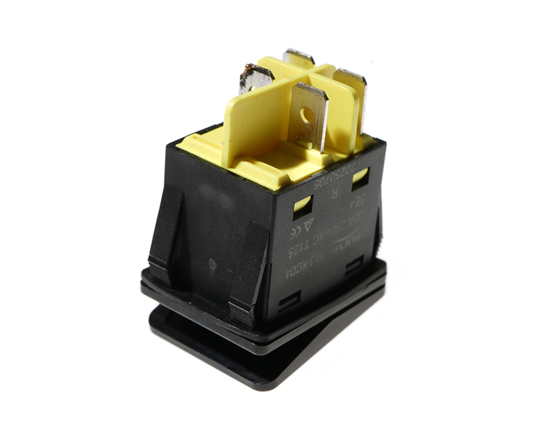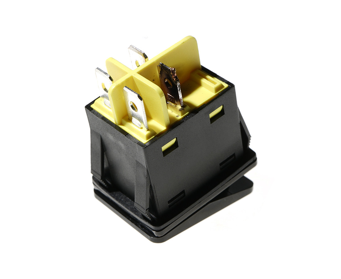 bistabilny; ON-OFF; czerwone podświetlenie 230V; klawisz czarny; korpus czarny; DPST; 4P; 15A 250VAC; żywotność: 20000 cykli; temperatura pracy: -40°C+125°C