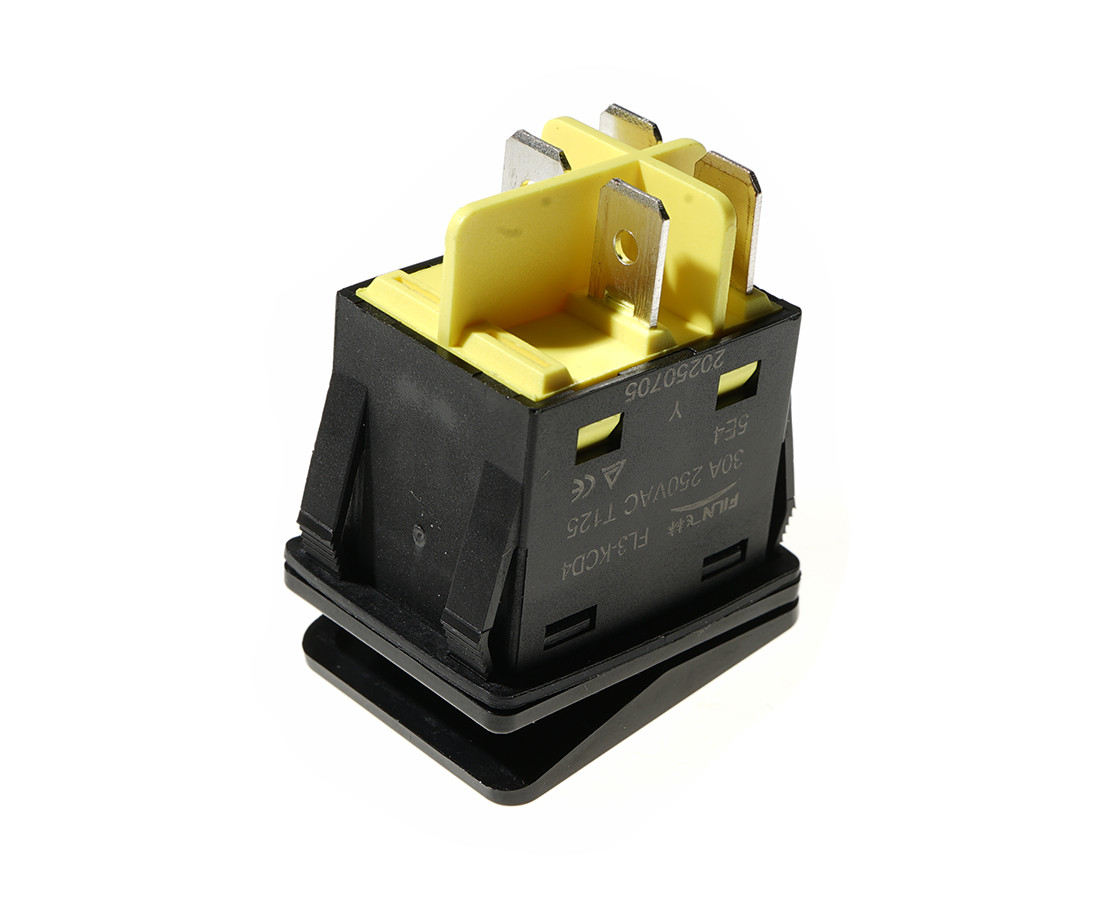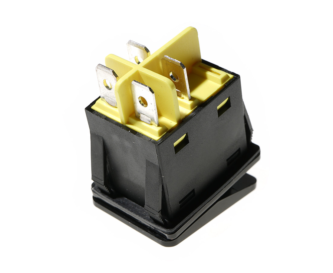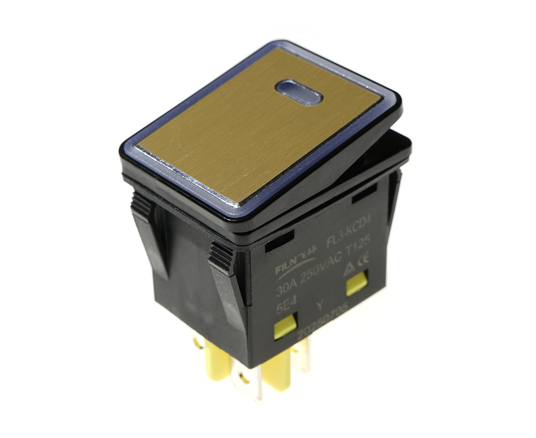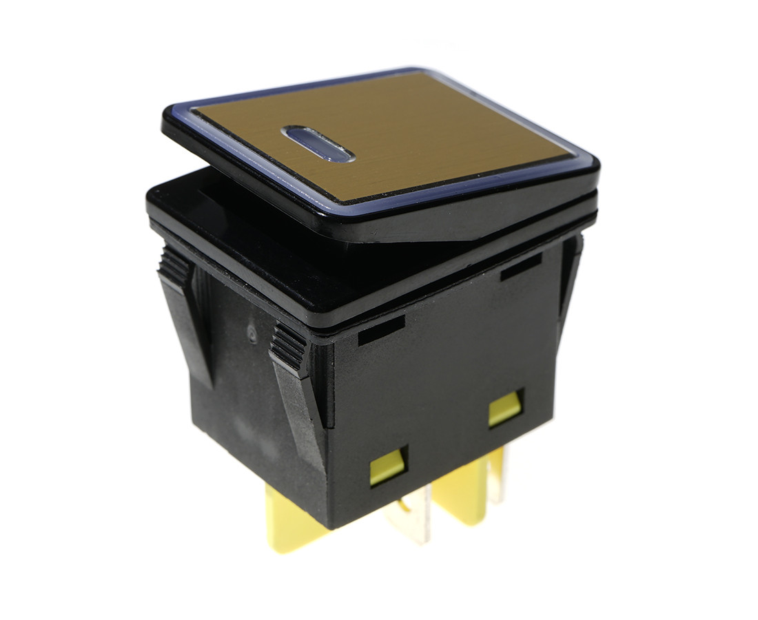 bistabilny; ON-OFF; żółte podświetlenie 230V; klawisz złoty; korpus czarny; DPST; 4P; 15A 250VAC; żywotność: 20000 cykli; temperatura pracy: -40°C+125°C