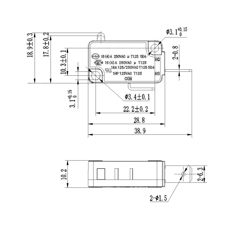 16A 250V; SP-ST; NO; 1,5N; bez dźwigni; IP40; żywotność: 100000 cycles; temperatura pracy: -25°C+125°C