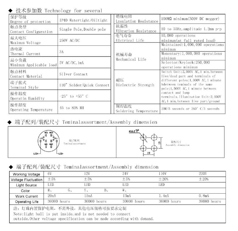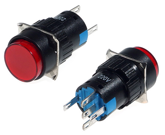 bistabilny; ON-OFF; kolor czerwony; z podświetleniem LED; 220V; SPST; 3P; okrągły; IP 40; 3A 250VAC; żywotność: 10000 cykli; temperatura pracy: -25~55°C