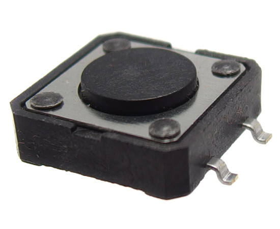 12x12mm, H=4.3mm, 12V DC, 50 mA, żywotność 100000 cykli, skok 0.25c0.15mm, siła 250c50gf SMD, siła nacisku 260c50gf, siła powrotna 60gF min. metalowy