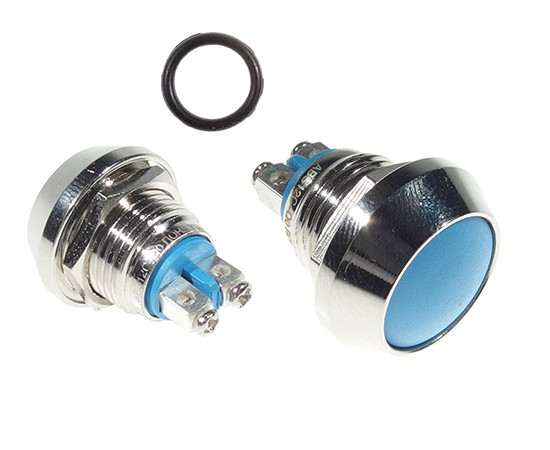 12mm; monostabilny; 1NO; chromowany; do przykręcania; z wypukłym niebieskim przyciskiem; 2A; 36VDC; IP67; IK08; żywotność: 40.000 cykli