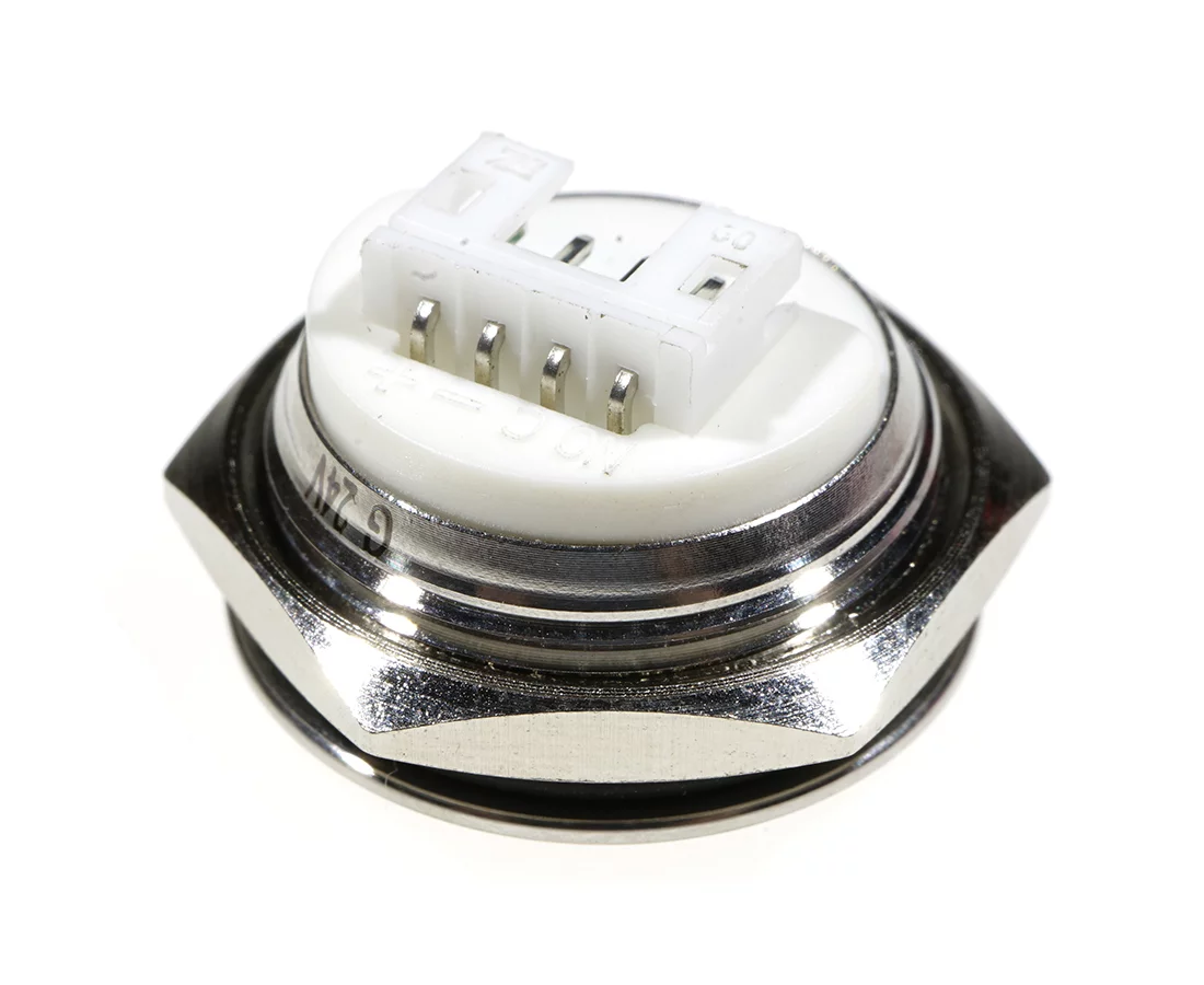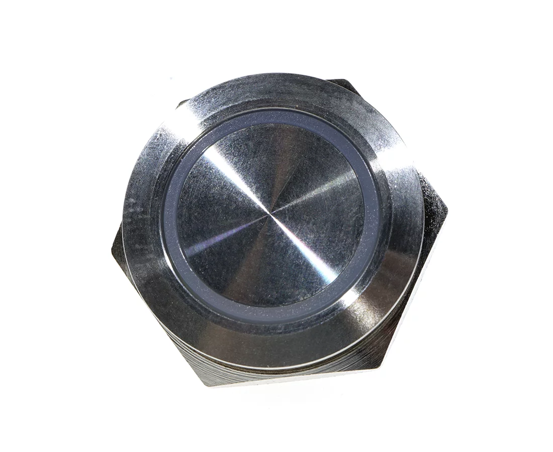 19mm; monostabilny; 1NO; stal nierdzewna; z przewodami kątowymi; z płaskim przyciskiem; krótki gwint; podświetlenie LED 24V; krawędziowe; zielone; 0.05A; IP67; żywotność: 100.000 cykli