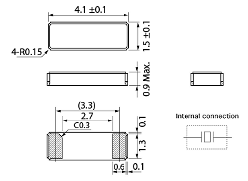 12.5pF +-20ppm -40÷85°C fundamental Dimension: 4.1x1.5x0.8mm