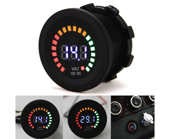 Cyfrowy woltomierz samochodowy, okrągły Napięcie: 12V, napięcie pomiarowe: 6-15V, kształt:okrągły