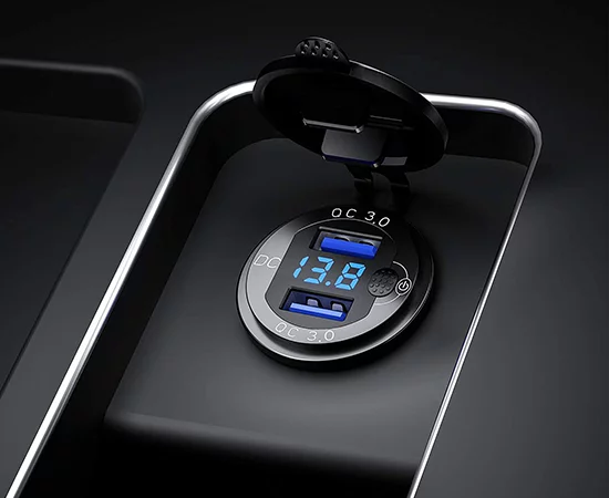 Woltomierz LED z przełącznikiem ON OFF; dwa porty USB QC 3,0 Napięcie: 12-24V; bez alarmu niskiego napięcia