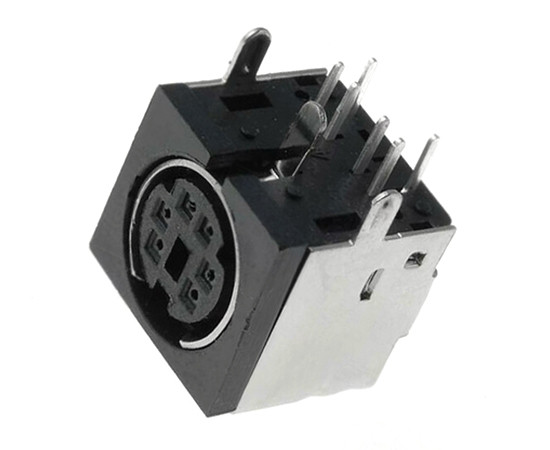 gniazdo MINI-DIN 6 pinów, kątowe, do druku, obudowa: metal / plastik, selektywnie złoc.