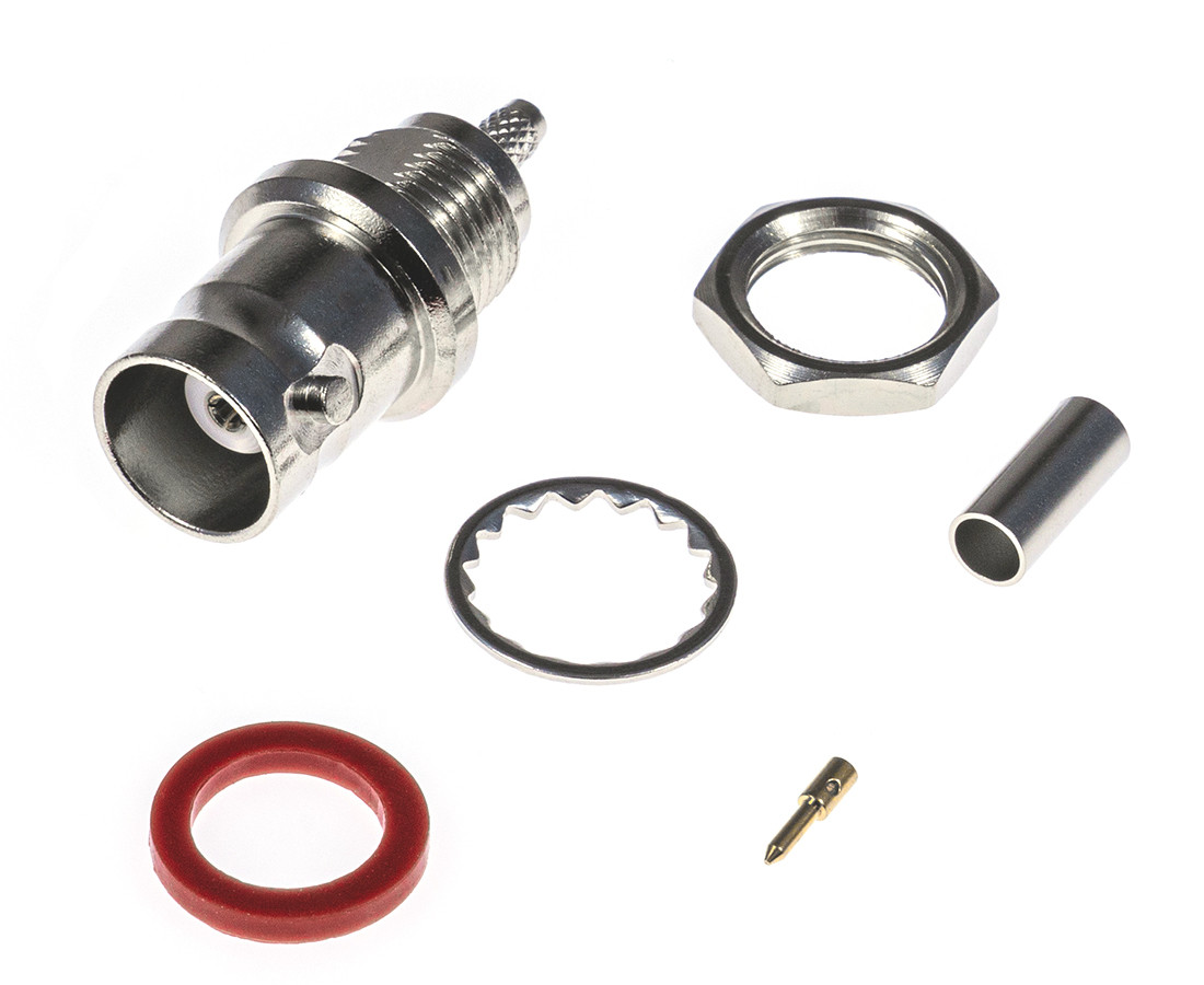 gniazdo żeńskie BNC, proste, 50 ohm zaciskane; na panel