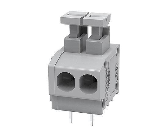 2 pola; raster: 3.81mm; wysokość: 15.5mm; kolor szary, 300V; 5A, 20-18AWG; materiał: PA66, UL94V-0 odp. WAGO 235-102, DINKLE 144RA-02P1, DECA MWX211-381, STELVIO MRT1