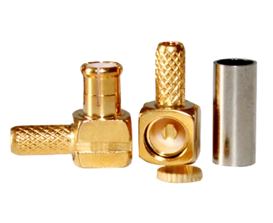 wtyk męski, MCX kątowy, zaciskany na przewód, 50 ohm