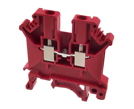 Złączka szynowa, śrubowa, 800V, 24A, przewód 0.2-2.5mm (VDE), gr/szer/kon: 5.2/42.5/1.6mm, kolor czerwony wys. (DIN 35:7.5/35:15/32): 47/54.5/52mm; odp. UK 3N , DK2.5, CDU 2.5N, ADR-3