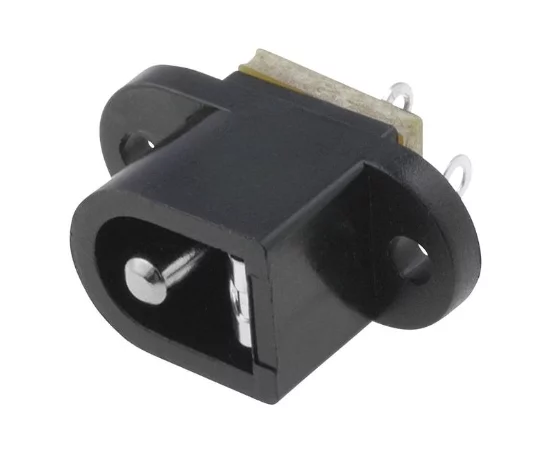 Gniazdo; zasilające DC; męskie; 5,5mm; 2,5mm; 5A; 12V DC proste, do lutowania, kołnierz (2 otwory), na panel, z wyłącznikiem