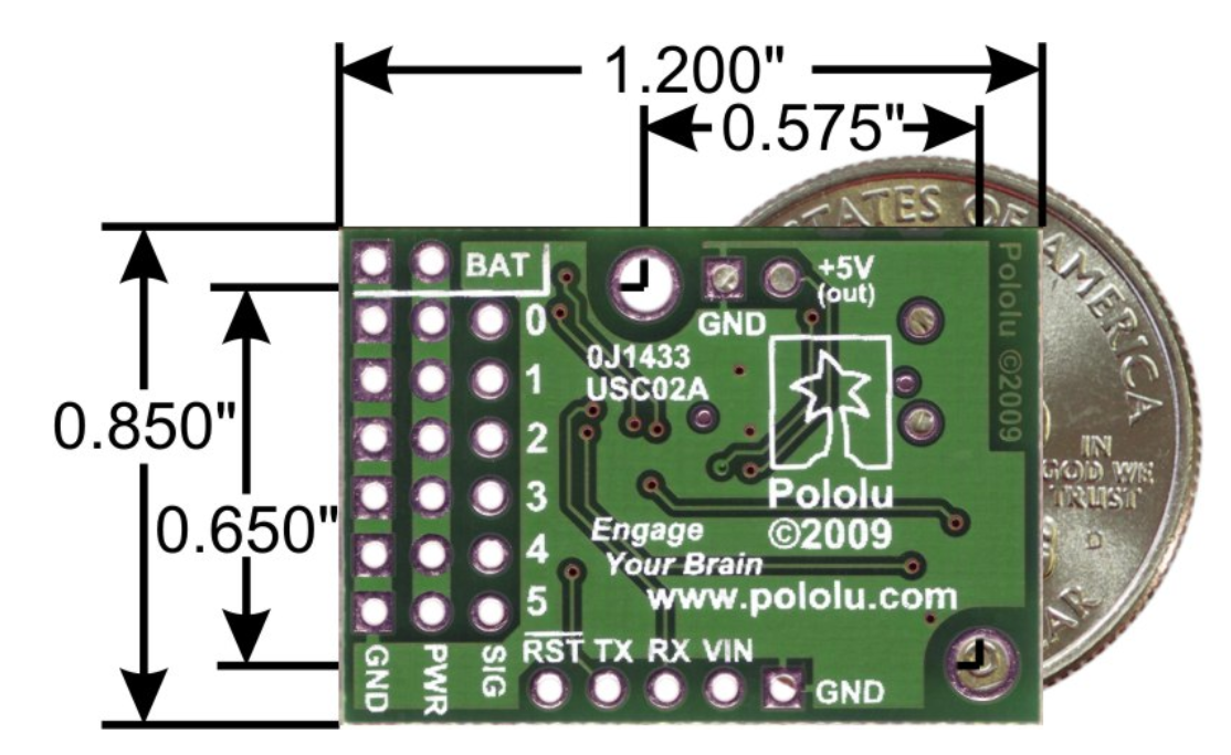 Pololu - Sterownik serwomechanizmu Wymiary: 216x305mm; liczba kanałów: 6; liczba wejść analogowych: 6; częstotliwość wyjściowa: 33-100Hz; szerokość impulsu: 64-3280µs