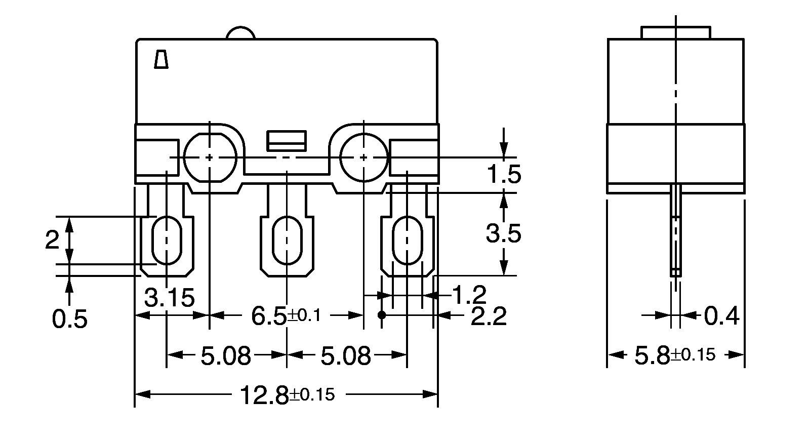Przełącznik krańcowy; wyprowadzenia: do druku; kątowe; prawe; wymiary: 12.8x5.8x6mm; r=5.08mm; 3A; 125VAC; ON-(ON); SPDT; 1.47N; żywotność: 1000000 cykli; temperatura pracy: -25°C+85°C