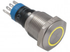 Przełącznik wandaloodporny; W12P10/Cy 12mm; monostabilny; 1NO; chromowany; do przykręcania; z wypukłym żółtym przyciskiem; 2A; 36VDC; IP67; IK08; żywotność: 40.000 cykli